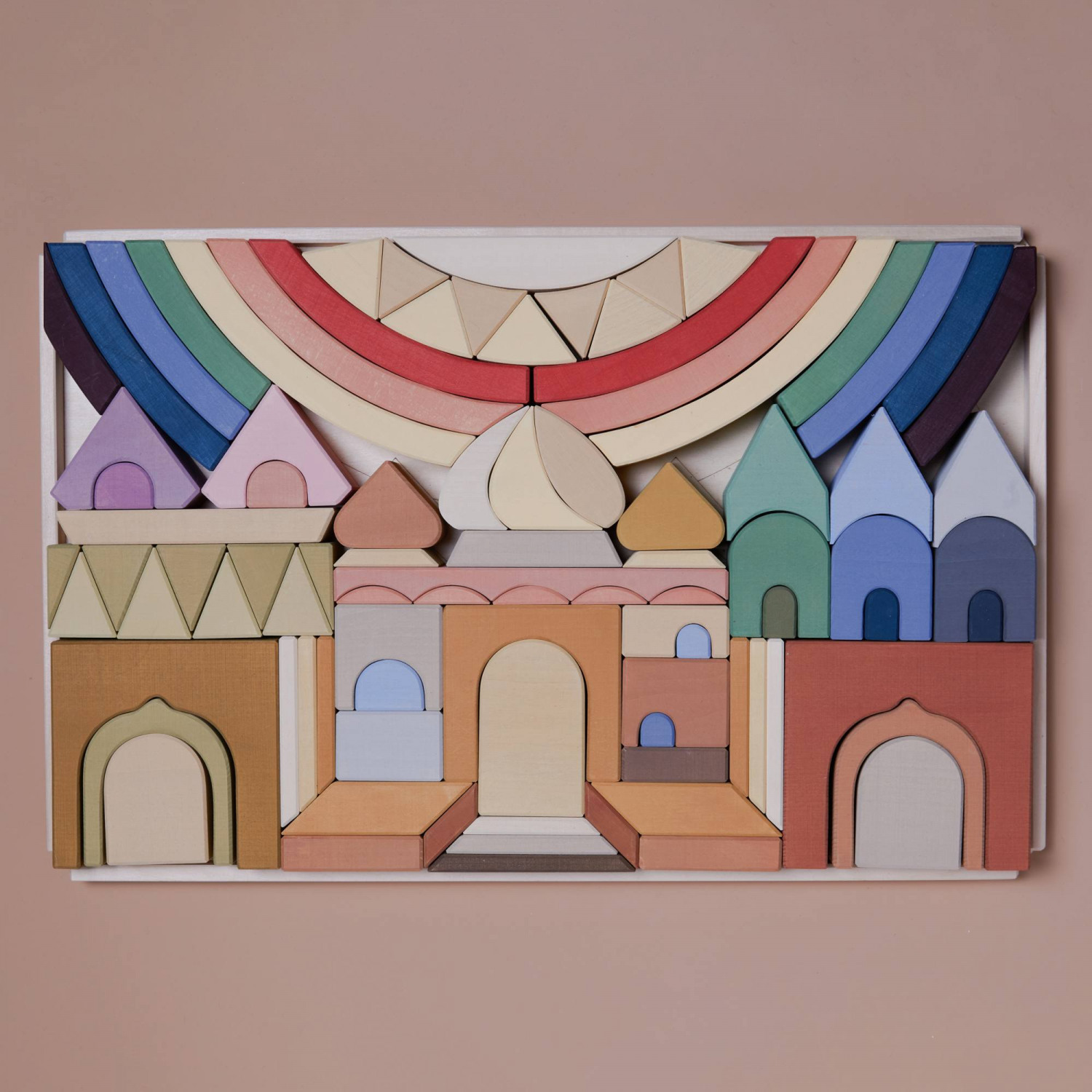 Конструктор собирается в большую красивую картину Собора, но по отдельности каждая деталь может превратиться во что угодно. Например, продолговатые части легко становятся мостом, тропинкой или железной дорогой. Домики разбираются на составные части и перевоплощаются в депо, спину морского змея или ушки пасхального кролика.