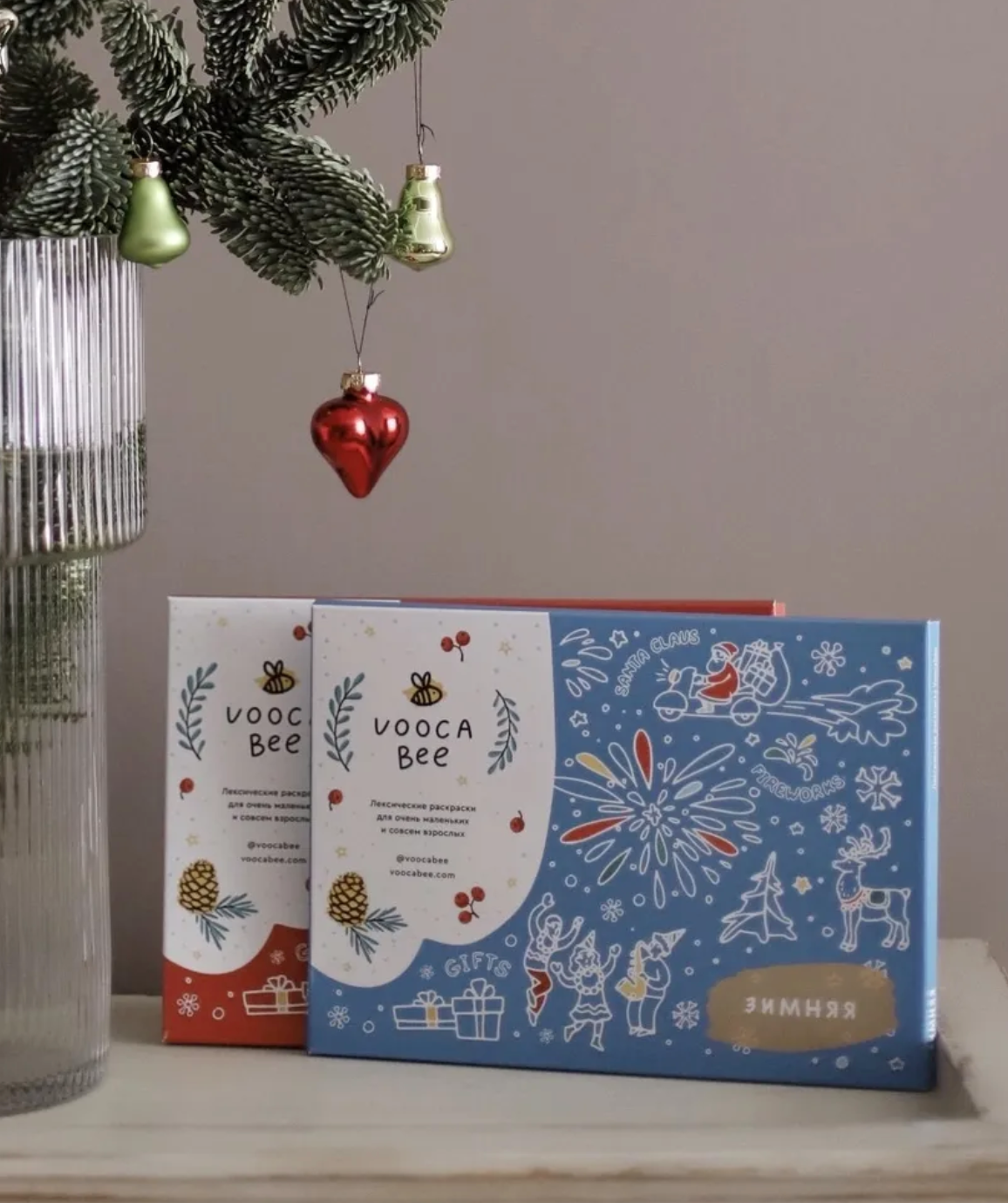 Раскраска сложена в плотную коробочку-конверт, на обороте все слова по теме с переводом. Обучающая раскраска на тему “Зимняя” - отличный подарок к новогодним праздникам.