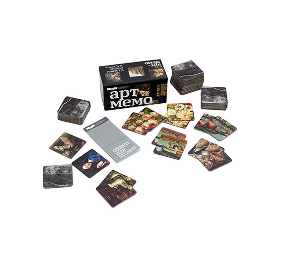 Один из популярных музейных мерчей — игра «Мемори» с произведениями искусств. Смысл игры, как и в классическом «Мемо», собрать как можно больше пар карточек, то есть две карточки с одинаковой картинкой.